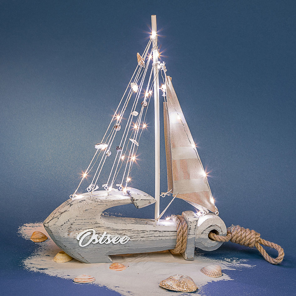 Holz LED Anker/Segelschiff "Ostsee"
