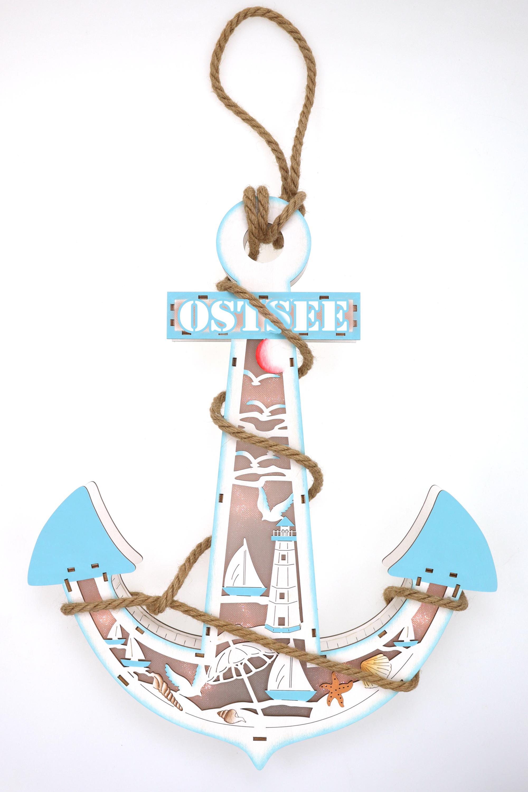 Holzdeko Anker mit LED Beleuchtung OSTSEE, 36*45*5cm