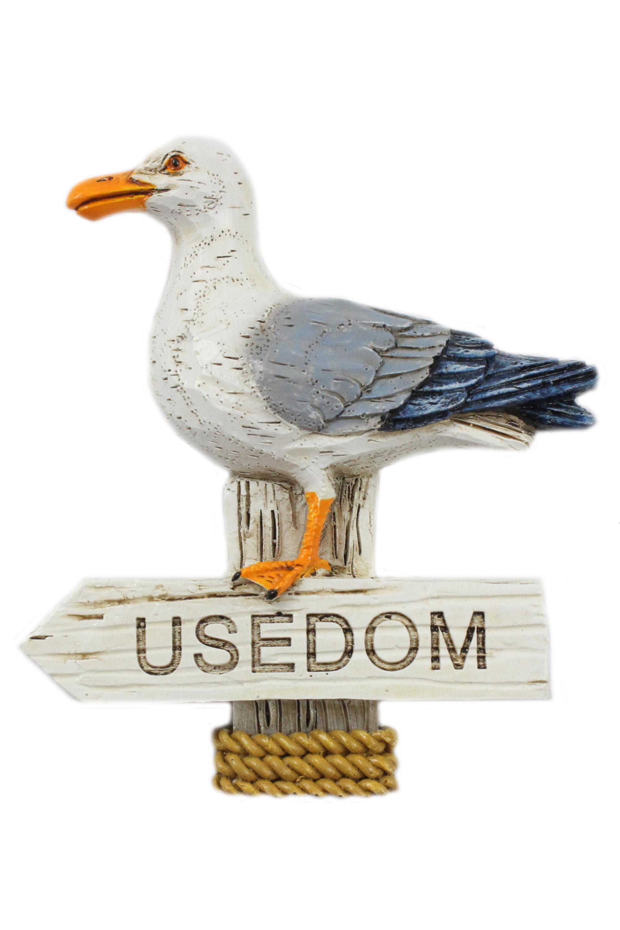 Magnet Möwe auf Pfahl "Usedom" in Holzoptik, 7*8cm