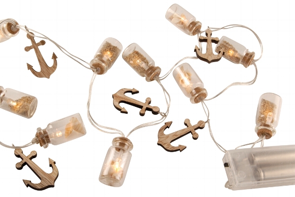 schöne LED-Girlande mit 10 kleinen Gläschen, abwechselnd mit Sand oder Muscheln befüllt,