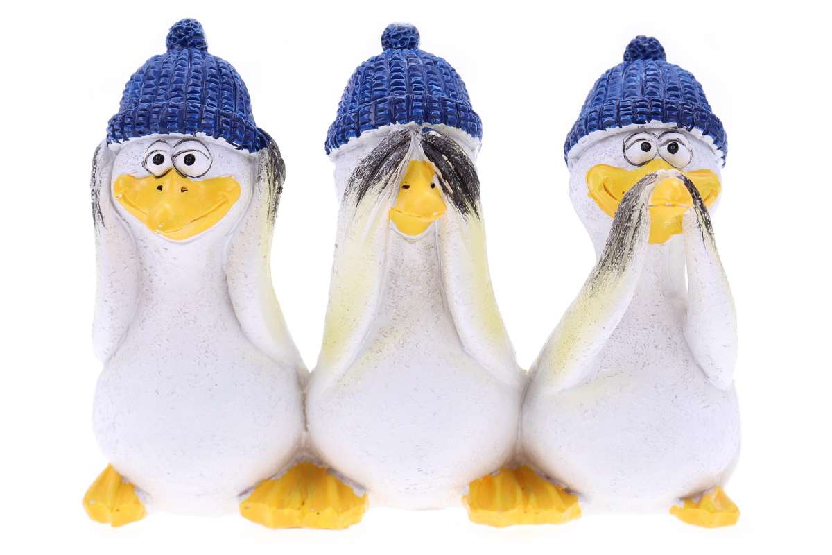 witzige Möwe mit blauer Bommelmütze - Nix hören, Nix sehen, Nix sagen
