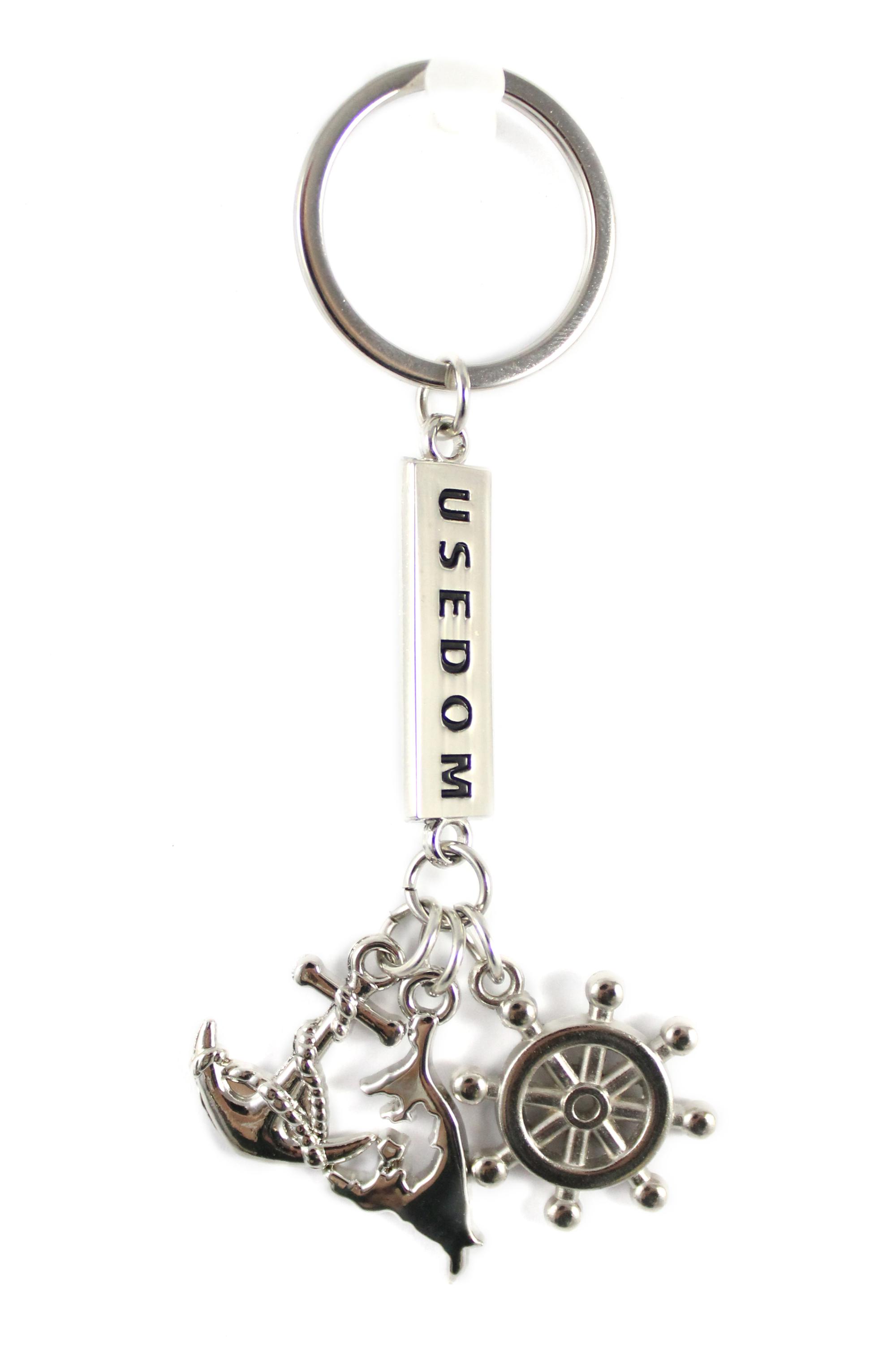 Schlüsselanhänger "Usedom" 3 Charms, Inselumriss, Anker, Steuerrad H.: 11cm