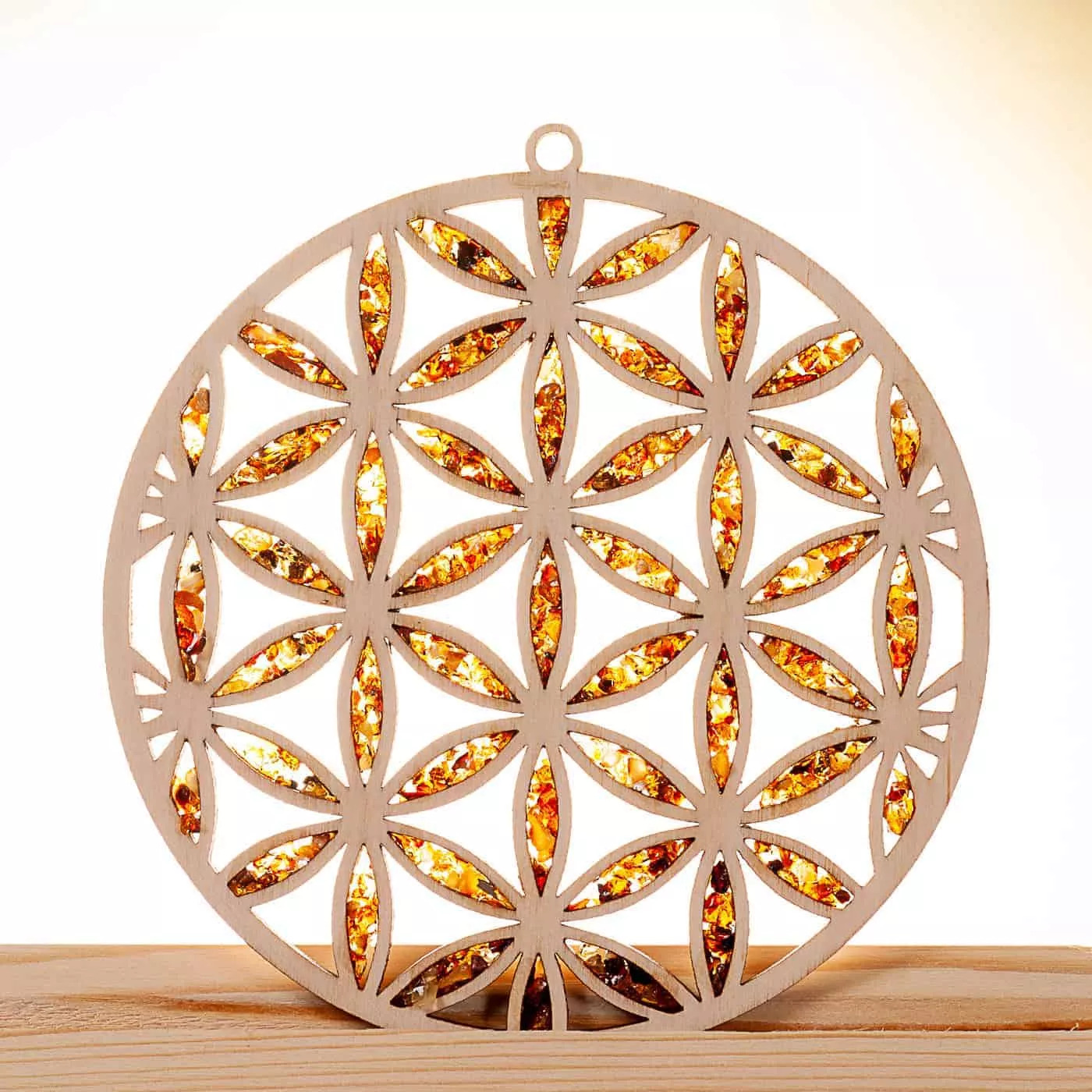 Diese wunderschönen Suncatcher sind detail gelasert und per Hand mit Bernstein befüllt.
